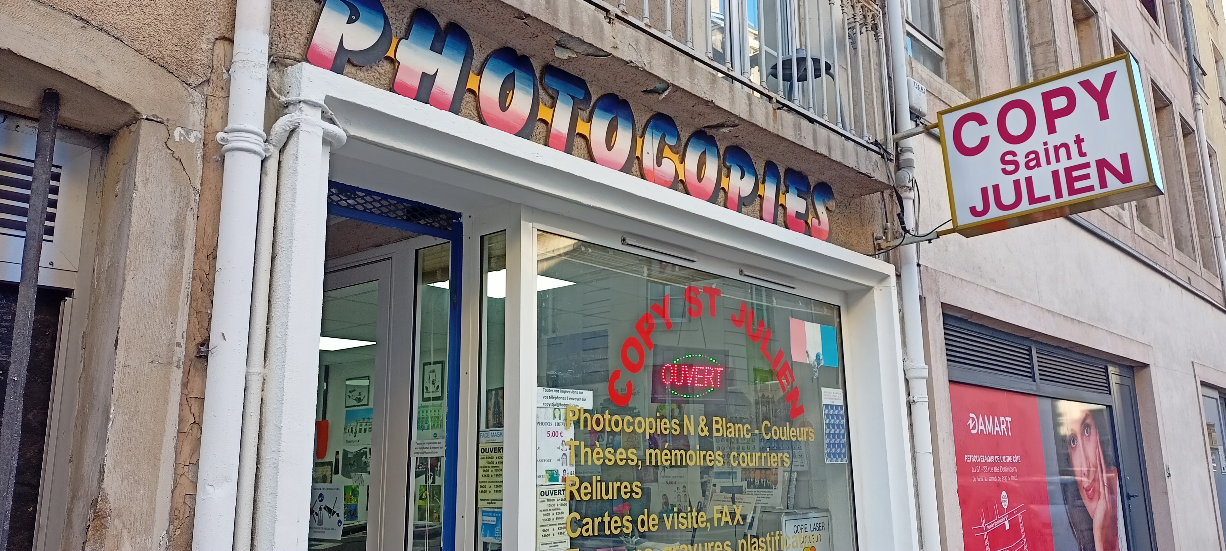 Voici toutes les informations sur le Magasin de reprographie Copy Saint Julien qui ce trouve au 22 Rue Saint-Julien, 54000 Nancy (54). Sur cette fiche vous trouverez les photos, l'adresse, les horaires d'ouverture, le numero de téléphone et les avis clients.Vous pouvez églement rédiger un avis si vous le souhaitez en bas de page.